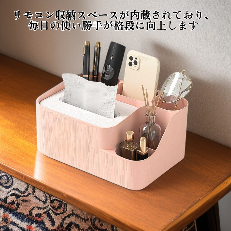 ● 多機能収納ボックスとして、ティッシュだけでなくリモコンや小物もすっきりと整理できて、生活空間を美しく保ちます。