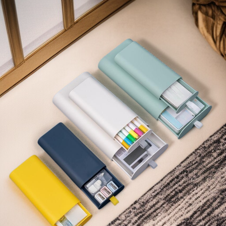 ● デスク下に簡単取り付け可能な隠し引き出しで、机上をすっきり整理できる収納ボックスです。