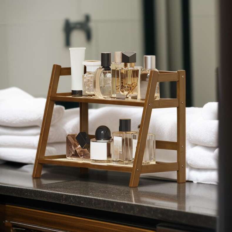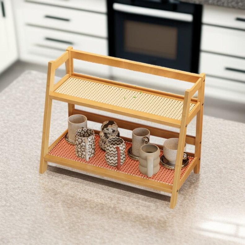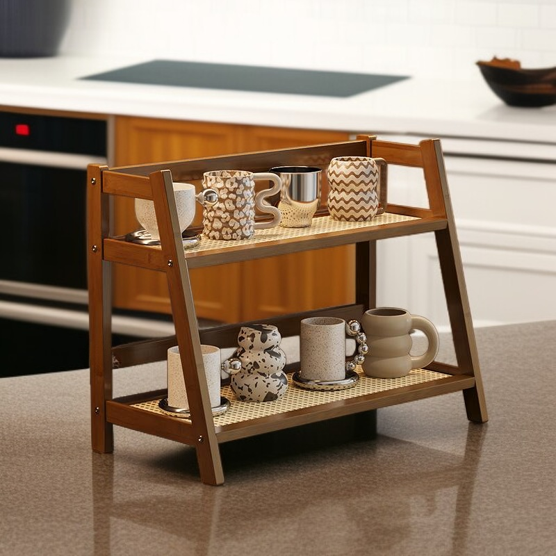 デスクトップ小型収納ラック 家庭用多層カップラック 藤編みシンプル化粧品・オフィスデスク整理棚