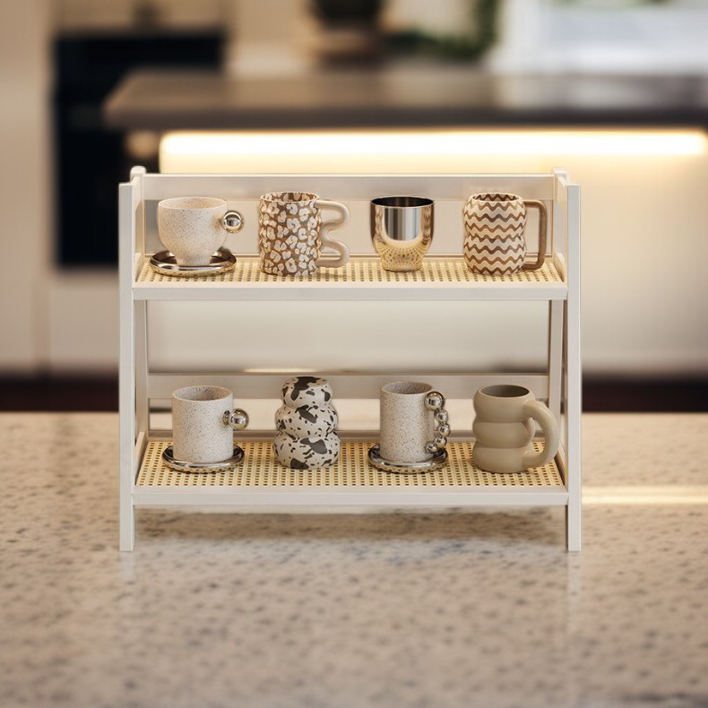 ● 藤編みデザインがナチュラルな雰囲気を演出し、インテリアに優しく溶け込む多層収納ラックです。