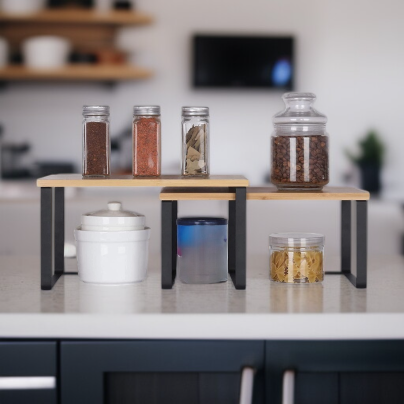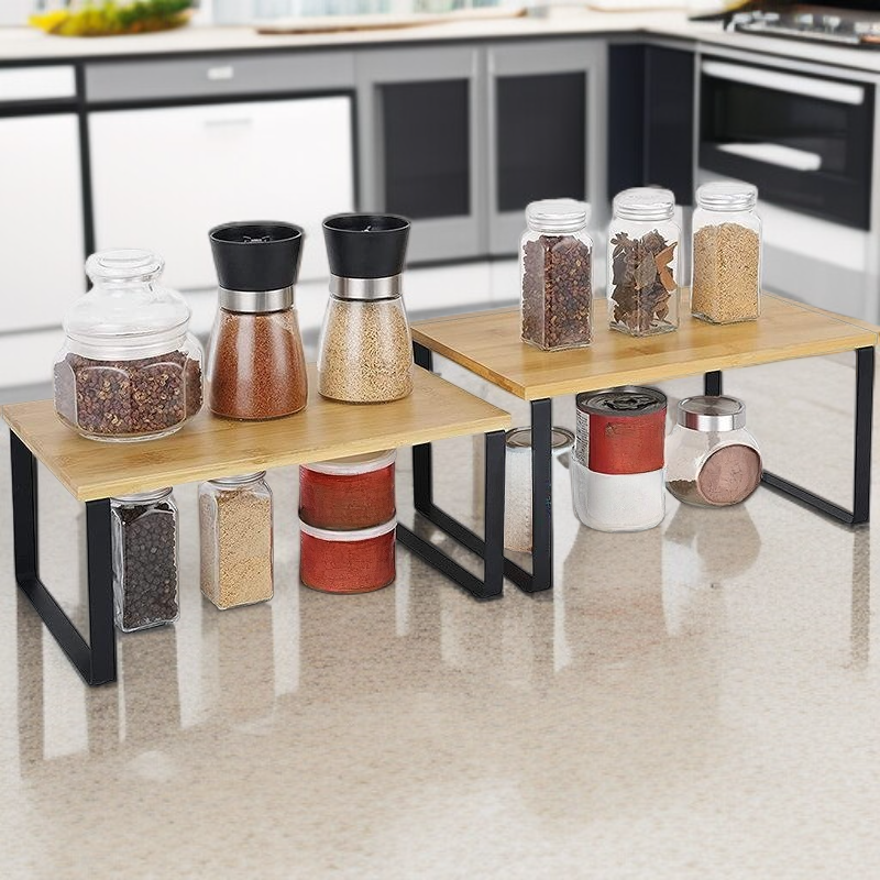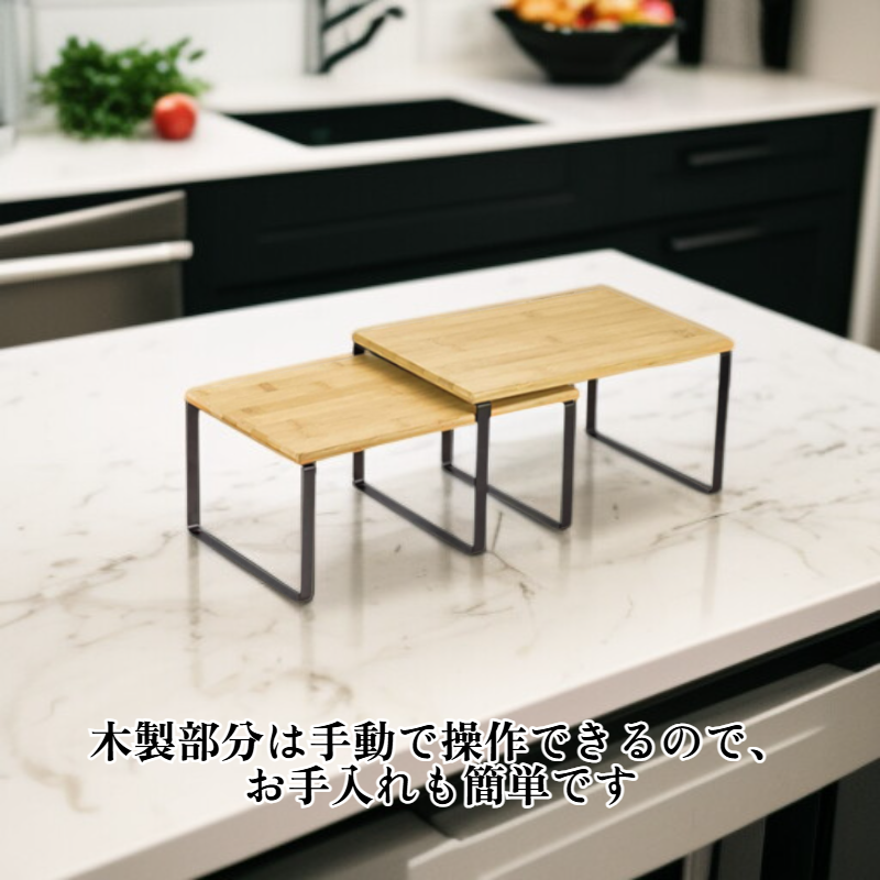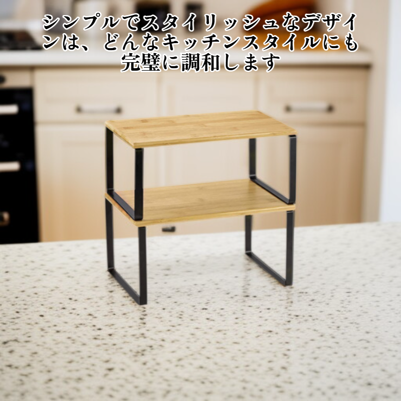 アイアンキッチン収納ラック 調味料・ボウル用 二段重ね可能 木製整理ラック
